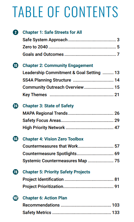 MAPA was awarded planning funds through the FY22 grant application cycle and has developed the regional Comprehensive Safety Action Plan (CSAP), finalized in April 2025.